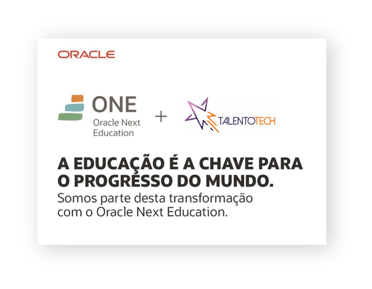 Para saber mais sobre o programa Oracle Next Education, acesse o site: https://www.oracle.com/br/education/oracle-next-education/